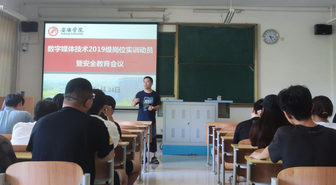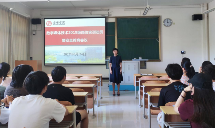 为加强学生岗位实训的安全管理,推动岗位实训工作顺利开展,6月24日下午,数字媒体系召开2019级数字媒体技术专业岗位实训动员暨安全教育大会。电信学院党总支书记于咏梅、副院长兼数字媒体系主任宋权华参加会议,会议由实训指导老师张洪江主持。