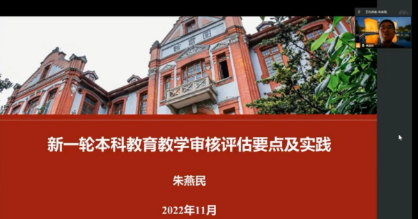 朱燕民以“新一轮本科教育教学审核评估要点及实践”为主题,分享了上海交通大学在新一轮审核评估试点工作中的实践经验,探讨了新一轮审核评估的精髓要义,以及提交审核评估申请、开展学校自评、撰写自评报告、填报教育教学基本状态数据、准备评估材料、线上评估、线下入校评估、评估整改等环节需要注意的事项。