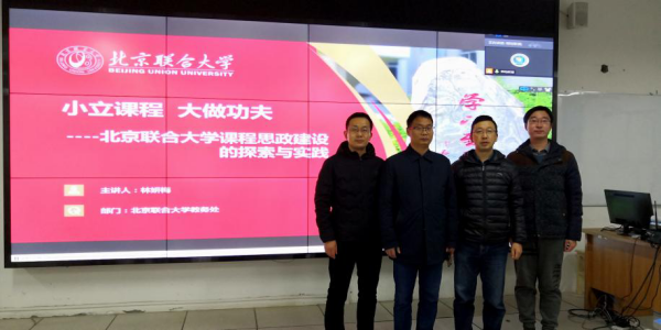 为了推动我院《创新思维》、《互联网+》、《现代教育技术》三门“课程思政”示范课建设,20201213日,BEAT365英国官网组织三个“课程思政”示范课建设项目组成员在科技楼A501参加了由北京联合大学组织举办的“‘小立课程大做功夫’——课程思政实践及案例分享直播会”,培训会为期1天。