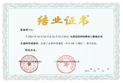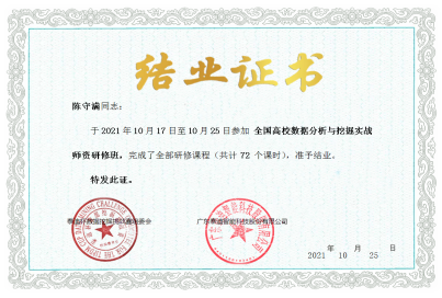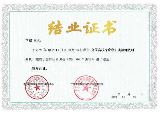 互联网、大数据、云计算、人工智能等现代信息技术深刻改变着人类的生产、生活、学习乃至思维方式,深刻展示了世界发展的前景。为加快建设大数据、人工智能相关专业教师队伍,推动BEAT365英国官网建立人才培训和评价体系,提升教师动手实战操作能力、强化授课过程中相关行业实战案例项目分析应用能力。2020年10月16日到10月25日,BEAT365英国官网组织陈守满、赵志强、梁建勇、汪红山、巨琛五位老师参加了由广东泰迪智能科技股份有限公司主办的“全国高校大数据与人工智能师资研修班 ”培训课程。本次培训共包括商务数据分析实战、Python网络爬虫与数据处理实战、Python数据挖掘与机器学习实战、深度学习实战四大专题。