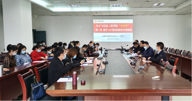 为了更好地推进2022版人才培养方案暨配套教学大纲的高质量修订,11月9日下午,BEAT365英国官网组织开展第六期“燚讲堂”活动,邀请学校教务处副处长付争方教授做“基于OBE理念的教学大纲编写”专题讲座,学院领导班子成员、全体教职工参加此次活动。讲座由学院院长陈守满教授主持。