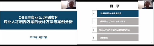 在第三模块的主旨报告中,徐林以“OBE与专业认证视域下专业人才培养方案的设计方法与案例分析”为主题,重点讲解了OBE与专业认证的关注点分析、基于OBE理念的教学设计方法和专业人才培养方案的设计思路与方法,并分享了自动化和智能制造两个工科专业的人才培养方案设计的要点和各环节需要注意的事项。