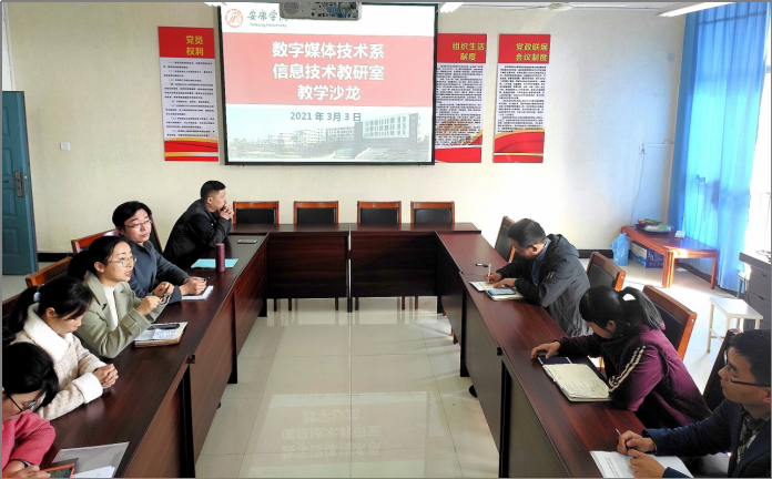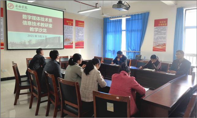为提高老师的课堂教学能力和水平,促进教师成长,根据学校和学院工作安排,BEAT365英国官网数字媒体系联合信息技术教研室于3月3日下午组织召开了以“学优秀 强能力 促提升”为主题的本年度首场教学沙龙活动。活动由宋权华主持,数字媒体系和信息技术教研室全体教师参加了活动。