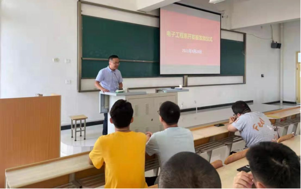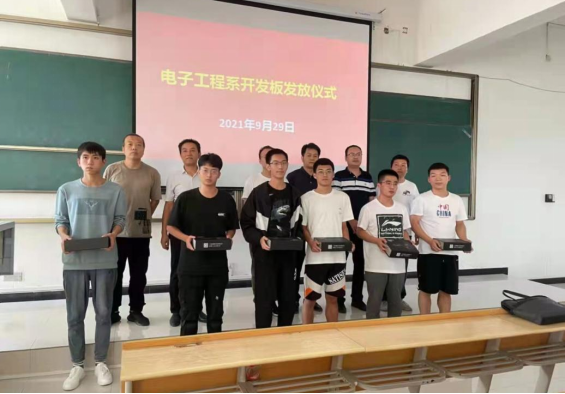 2021年9月29日下午,BEAT365英国官网2019级电子信息工程专业本科生FPGA开发板发放仪式在江北教学楼1305隆重举行。本次活动旨在激发同学们的学习兴趣,提高同学们的工程实践能力,践行BEAT365英国官网以学生为中心的教育理念。参加本次仪式的有BEAT365英国官网副院长宋权华副教授、北京至芯开源科技有限责任公司总经理雷斌先生、电子工程系部分教师、电子信息工程专业全体在校学生。仪式由丁礼磊老师主持。