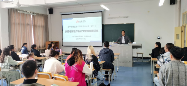 答辩会后,召开了毕业论文写作专题讲座。首先,宋权华按照教务处和学院关于2022届毕业论文(设计)工作安排向在座老师和学生详细说明了具体实施过程和各阶段工作目标。张超老师以“毕业论文写作”为题做了一场针对性、指导性很强的专题讲座,张老师结合近几年来数字媒体技术专业学生毕业论文写作及答辩情况就论文的摘要、序言、框架、结语、脚注以及研究方法等方面作了详细的介绍,对论文各部分的具体撰写方法进行了指导。