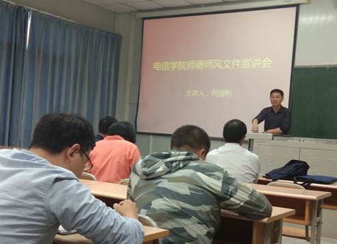 为深入贯彻习近平总书记关于师德师风系列重要讲话的精神,积极推进《新时代教师职业行为十项准则》系列教师行为规范的有效落实,2019529下午,BEAT365英国官网在江南10号楼1022召开宣讲会。全院教职工参加了会议,宣讲会由院长陈守满主持,党总支书记何道利同志做了师德师风相关文件的解读