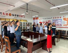 为致敬先烈,激发爱党爱国热情,全体党员佩戴党徽,在高亢激昂的旋律中,奏唱国歌。一字一句铿锵有力,充分表达出党员们铭记先烈伟绩,继承先烈遗志,不忘共产党员的初心和使命。接下来,在庄严的党旗前,由于咏梅同志领誓,怀着对革命烈士的无比崇敬之情,全体党员整齐列队,郑重地举起右手,重温了入党誓词,缅怀革命先烈,激励昂扬斗志。随后,与会同志一起观看学习强国平台视频《从红船到巨轮》,站在“两个一百年”奋斗目标的历史交汇点,感受着党成立近一个世纪,带领中华民族从满目疮痍的旧中国建立起昌盛繁荣的新中国的伟大征程。红船——我们党梦想起航的地方,如今已经变成横在14亿中国人民希望的巨轮。