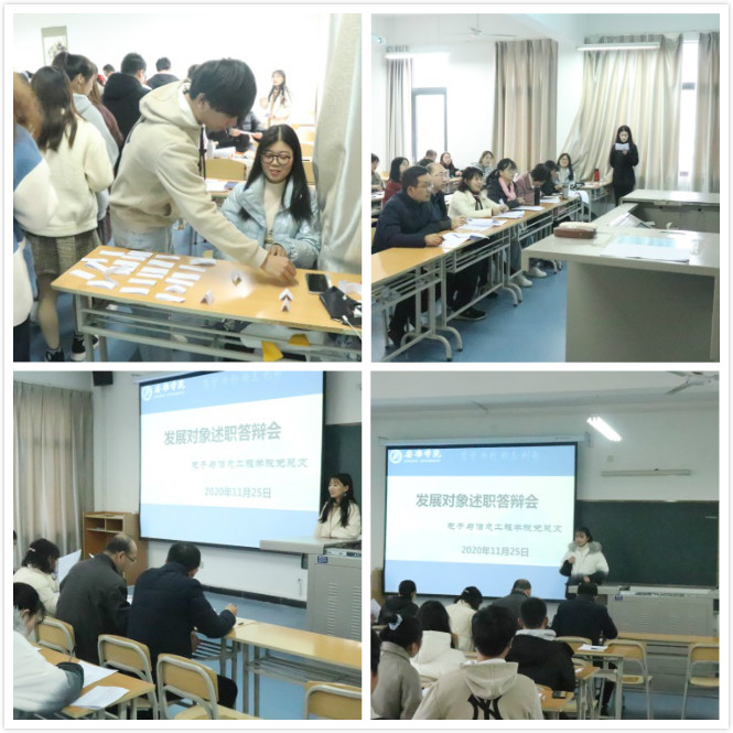 2020年11月25日下午,BEAT365英国官网党总支在1308教室召开了党员发展对象述职答辩会。学院党总支副书记、院长陈守满教授,学院党总支委员成英丽、宋权华、朱燕老师,教工党支部赵志强、余顺园、程晓梅等老师以及学院全体学生党员发展对象参加答辩会。