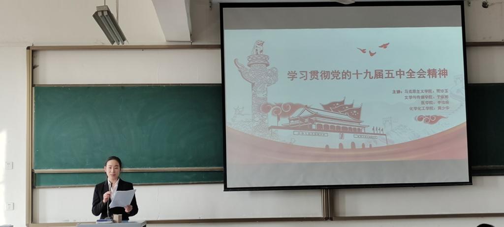 会议正式开始,马克思主义学院贾珍玉向同学们介绍党的十九届五中全会审议通过了《中共中央关于制定国民经济和社会发展第十四个五年规划和二〇三五年远景目标的建议》,该《建议》是开启全面建设社会主义现代化国家新征程、向第二个百年奋斗目标进军的纲领性文件,是今后5年乃至更长时期我国经济社会发展的行动指南。