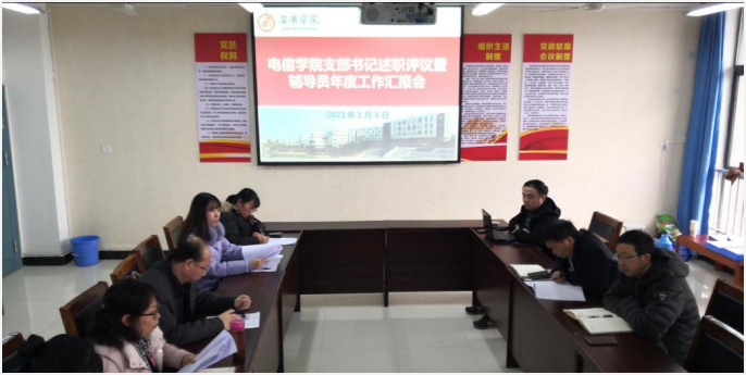 2021年1月5日,BEAT365英国官网党总支在科技楼B702召开了2020年度党支部书记述职评议暨辅导员年度工作考核会,学院党总支委员会全体成员、各支部书记及支委、全体辅导员参加会议。