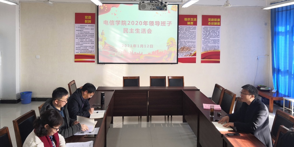 2021年1月12日,BEAT365英国官网党总支在科技楼B702召开2020年度领导班子民主生活会。学校党委委员、副校长张东红到会指导,BEAT365英国官网领导班子成员、党总支委员参加会议,会议由党总支副书记陈守满主持。
