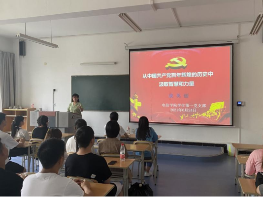 2021年6月24日下午在江北校区1321教室,BEAT365英国官网学生第一党支部开展了支部书记讲党课活动,支部书记成英丽老师为全体学生党员讲了题为《从中国共产党百年辉煌的历史中汲取智慧和力量》的党课。此次党课主要包括三个方面内容:一是号召全体学生党员充分认识开展党史学习教育的重大意义;二是介绍开展党史学习教育的主要内容;三是鼓励全体学生党员从中国共产党辉煌历史中汲取继续进步的智慧和力量。