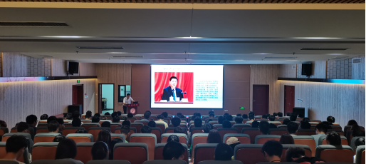 为庆祝中国共产党成立100周年,持续贯彻落实学习“四史”的要求,深入贯彻落实习近平总书记在党史学习教育动员大会上的重要讲话精神,切实加强学生党史学习教育,2021年6月23日下午,副校长张东红在江北校区图书馆报告厅为我院2018级,2019级学生作了一场题为《铭记百年光辉历程,汲取前行智慧力量》的形势与政策课暨专题党课,此次课程由党总支书记于咏梅主持。
