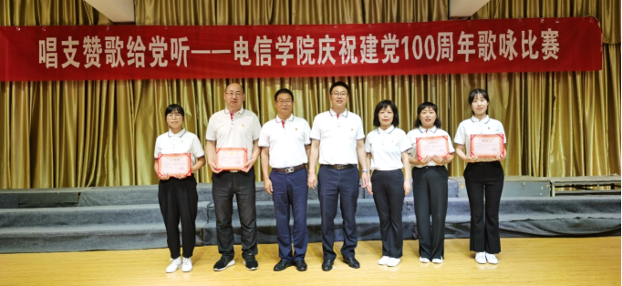 此次活动由全体教师党员与学生党员、教工第一党支部全体教师、教工第二党支部全体教师、学生第一党支部成员、学生第二党支部成员分别演唱了《我宣誓》《没有共产党就没有新中国》《歌唱祖国》《中国,中国,鲜红的太阳永不落》《让我们荡起双桨》《我和我的祖国》等经典红色曲目,唱出了热爱党、热爱祖国、热爱新生活的心声,展现了坚定的理想信念和积极奋进的精神风貌。经过激烈角逐,教工第二党支部和学生第二党支部获得一等奖,教工第一党支部和学生第一党支部获得二等奖。