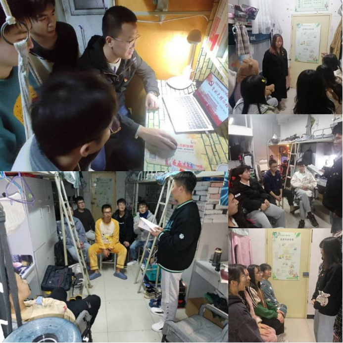 勿忘昨天的苦难辉煌,无愧今天的使命担当,不负明天的伟大梦想。11月8日至11日,中国共产党第十九届中央委员会第六次全体会议在北京举行。中共中央总书记习近平作了重要讲话,全会审议通过了《中共中央关于党的百年奋斗重大成就和历史经验的决议》和《关于召开党的第二十次全国代表大会的决议》,12日上午中共中央举行了新闻发布会,介绍党的十九届六中全会精神。为深入学习十九届六中全会精神,推进党史学习教育向纵深发展,11月18日,学生第一党支部支委和在校党员深入宿舍,为学生讲解十九届六中全会精神。