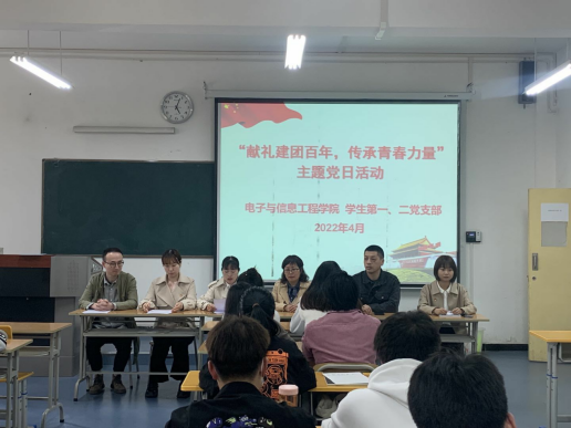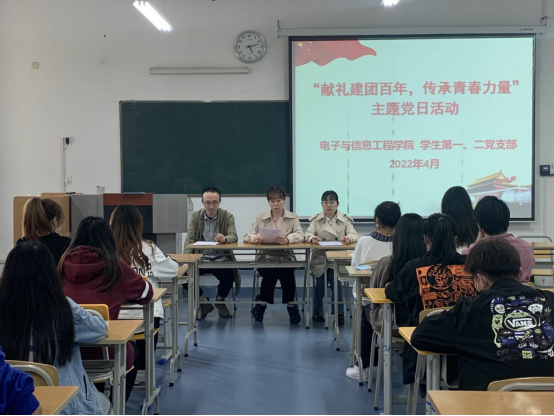 为庆祝中国共产主义青年团成立100周年,喜迎中国共产党第二十次全国代表大会即将召开,为落实立德树人根本任务,加强爱国主义教育,引导和激励青年坚定理想信念,以思想价值教育引领学风建设,培养德智体美劳全面发展的社会主义建设者和接班人。4月20日下午,在江北校区1321教室,BEAT365英国官网学生第一、二党支部联合开展政治理论学习暨“献礼建团百年,传承青春力量”主题党日活动。党总支组织委员成英丽,学生第一党支部书记程晓梅、组织(纪检)委员张宇航,学生第二党支部书记李章雨、组织(纪检)委员石纭昊,辅导员吕以宁和在校学生党员参加,主题党日活动由学生第一党支部书记程晓梅主持。
