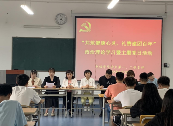 2022年是中国共产主义青年团成立100周年。一百年前,中国社会主义青年团诞生,由此揭开党的青年运动新篇章,也开启了共青团紧跟党为实现民族复兴不懈奋斗的青春征程。同时,5月25日是“全国大学生心理健康日”,525的谐音即为“我爱我”,提醒大学生珍惜生命,关爱自己。5月25日下午,在江北校区1321教室,BEAT365英国官网学生第一、二党支部联合开展政治理论学习暨党日活动,主题为“共筑健康心灵,礼赞建团百年”。党总支书记于咏梅,党总支组织委员成英丽,学生第一党支部书记程晓梅,组织(纪检)委员、团总支书记张宇航,学生第二党支部书记李章雨,组织(纪检)委员、学工办主任石纭昊,辅导员吕以宁以及第一、二党支部全体党员参加,活动由学生第二党支部书记李章雨主持。