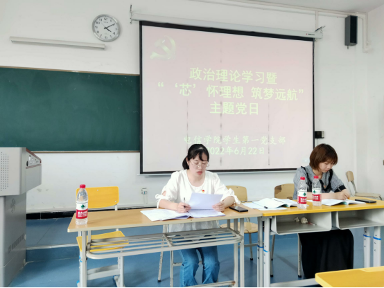 6月22日下午,BEAT365英国官网学生第一党支部在江北校区1321教室召开党员大会, 党支部书记程晓梅为全体党员、部分发展对象和入党积极分子讲了一堂别开生面的党课。辅导员吕以宁全程听课。