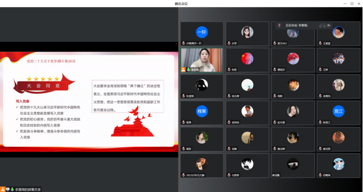 李章雨希望各位党员同志们,以更加坚定的理想信仰、更具扎实的政治作风,以实际行动在本职岗位上履职尽责,担当作为。同时要求大家自觉学习、宣传、贯彻党的二十大精神,要深刻理解内涵实质,迅速把思想和行动统一到大会精神上来,要把学习宣传贯彻党的二十大精神作为当前和今后一段时期最重要的政治任务。