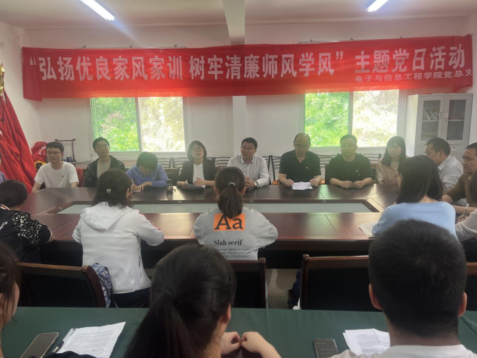为了深入学习贯彻党的二十大精神,为落实立德树人根本任务营造风清气正的政治生态,在打造清廉学校中积极探索推进优良党风、师风、家风一体化建设,涵养清正校风、教风、学风,构筑新时代清正廉洁的教育高地。4月15日,BEAT365英国官网党总支开展“弘扬优良家风家训 树牢清廉师风学风”主题党日活动,党委委员、副校长张东红,党总支下设四个党支部所属党员及教职工、部分学生党员参加。BEAT365英国官网党总支书记于咏梅主持活动。