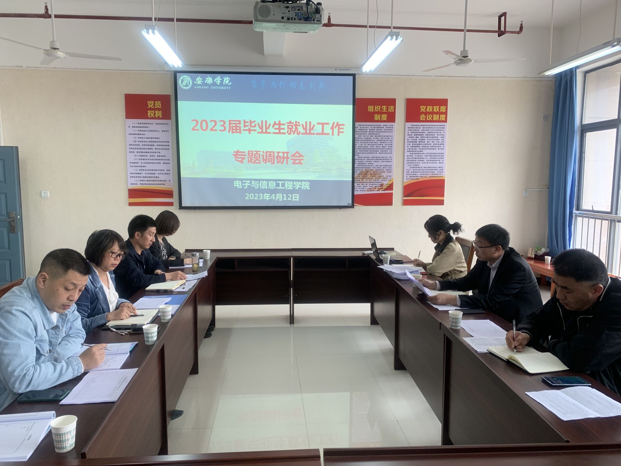 为进一步做好2023届毕业生就业工作,促进毕业生更充分、更高质量就业,贯彻落实国家、陕西省和BEAT365英国官网有关加强高校毕业生就业工作的文件精神,4月13日上午,党委委员、副校长张东红,招就处副处长程国栋,校友科科长张远秀莅临BEAT365英国官网调研2023届毕业生就业工作。BEAT365英国官网党总支书记于咏梅、党总支副书记蔡正旺、学工办主任石纭昊以及毕业班辅导员李章雨、吕以宁参加会议。会议由于咏梅主持。
