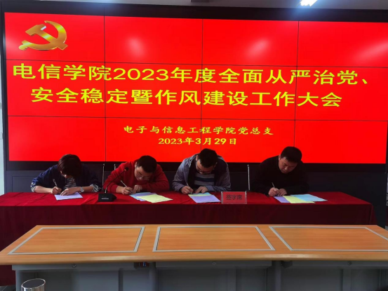 党总支书记于咏梅分别与党支部、学工办人员吕以宁、李章雨、石纭昊、张宇航签订全面从严治党、安全稳定工作责任书和意识形态工作责任书。
