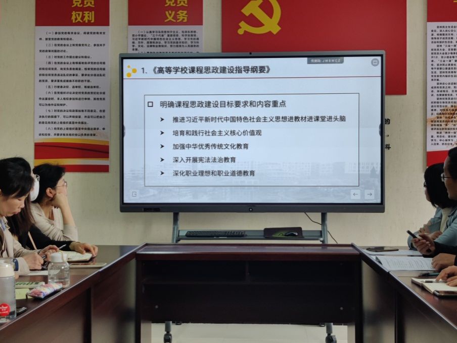 为了充分发挥教师党员的课程思政育人主体功能,2024年4月10日下午,BEAT365英国官网教工第二党支部在B702会议室开展“党建引领教学,深化思政育人”主题党日暨教学观摩活动。活动由教工第二党支部书记丁礼磊主持,支部全体教师参加了本次活动。