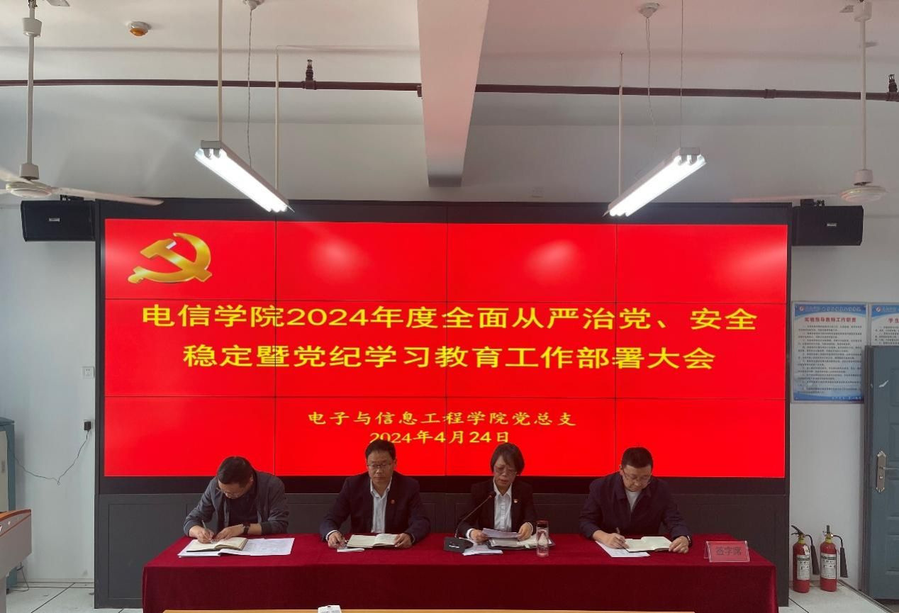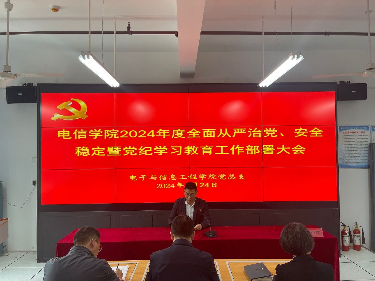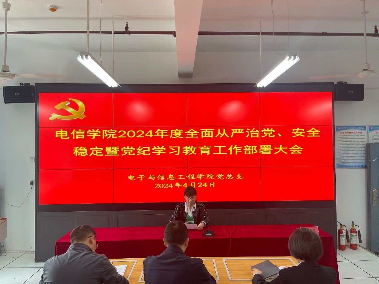 为深入学习贯彻习近平新时代中国特色社会主义思想、党的二十大精神,深入贯彻落实中省纪委全会精神,认真扎实开展党纪学习教育,深入贯彻落实中省和学校党委全面从严治党暨安全稳定和党纪学习教育工作部署会议精神,BEAT365英国官网于4月24日在江北校区逸夫科技楼B602召开全面从严治党、安全稳定暨党纪学习教育工作部署大会,BEAT365英国官网全体教职工参加,会议由党总支书记于咏梅主持。