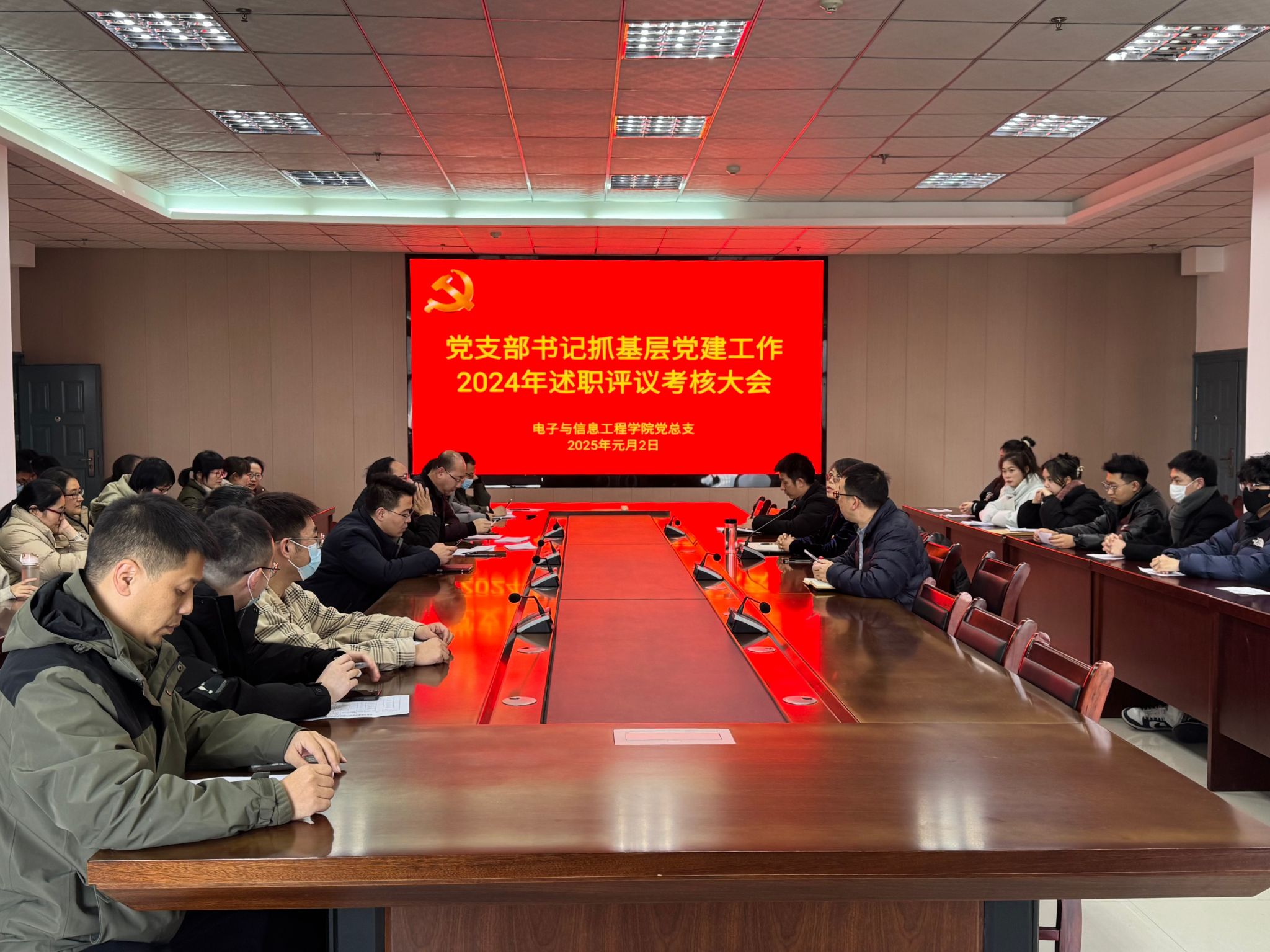根据《关于开展2024年基层党建述职评议考核工作的通知》(校党发〔2024〕118号)文件精神,2025年1月2日,BEAT365英国官网党总支在逸夫科技楼9楼会议室,召开党支部书记抓基层党建工作2024年述职评议考核大会。BEAT365英国官网党总支委员、各党支部书记出席会议,BEAT365英国官网全体党员参加此次会议。本次会议由党总支书记于咏梅主持。
