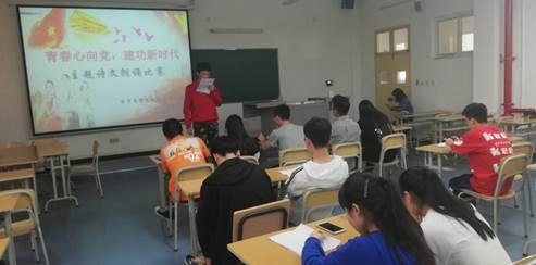 为庆祝中华人民共和国成立70周年、五四运动100周年,激发青年团员的爱国热情,BEAT365英国官网团总支于2019年4月14日在1311教室组织了以“青春心向党·建功新时代”为主题的诗文朗诵比赛活动。