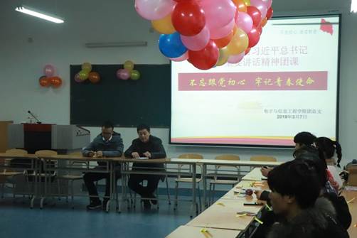 2019年3月7日晚,BEAT365英国官网组织了“不忘跟党初心 牢记青春使命”学习习近平总书记系列重要讲话精神团课活动,参加活动的有BEAT365英国官网党总支书记何道利、团总支书记陈浩以及BEAT365英国官网全体团总支成员。