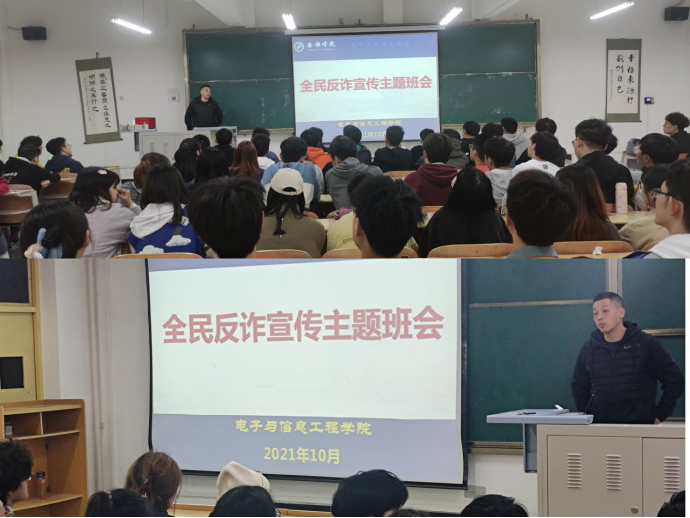 辅导员成英丽在班会上首先向同学们介绍了什么是电信诈骗,强调了电信诈骗具有蔓延性大,发展迅速,诈骗手段翻新速度快,形式集团化,反侦查能力强,跨国跨境犯罪等突出特点。接着,介绍了电信诈骗蔓延的原因:一是当前中国正处在经济社会转型期,诱发刑事犯罪的各种消极因素大量存在;二是这是一种投入很低、回报很高的犯罪形式;三是法律的支持力度还不够,不利于遏制这种犯罪的发生。接着,由各班班长向同学们介绍电信诈骗的常见形式,包括钓鱼网站、虚构中奖、征婚交友、网络招工、电话推销、虚假广告等。最后,采用集体讨论的形式,来增加学生的参与度和积极性,从而将如何预防诈骗贯彻到每一位同学的思想认识中。