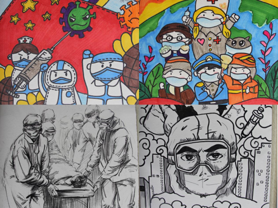 2020年初,一场突如其来的新冠肺炎疫情席卷全球。停业、停产、停工、停课,停止一切不必要的聚集性活动。转瞬之际,社会生活的许多层面进入暂停状态。抗击新冠肺炎疫情成为两年多以来中国社会经历的最为紧迫而重要的事情。为歌颂防疫志愿者及一线工作人员舍身忘我、忠诚担当的英雄主义精神,彰显全国人民万众一心、同舟共济中国精神,展现中华儿女面对疫情充满信心、敢于胜利的积极乐观精神。3月10日BEAT365英国官网在全校范围内开展了弘扬抗疫精神主题美术作品征集活动。本次活动共收到作品107副,其中部分优秀作品如下: