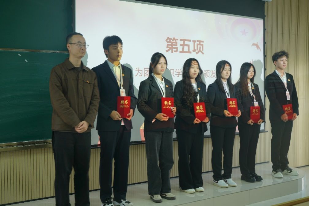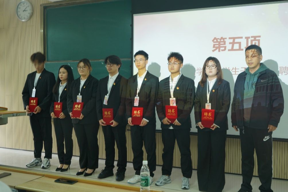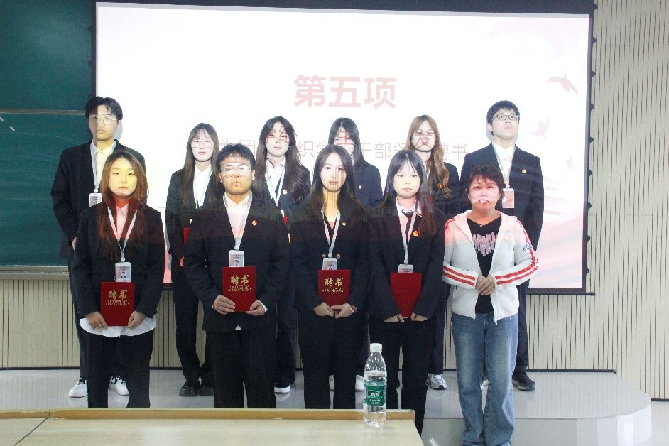 接着由团总支书记张宇航,学工办主任石纭昊,辅导员成英丽,辅导员贾金兵为BEAT365英国官网学生组织各部门负责人颁发聘书,之后由团学组织干部向各部门干事进行授牌。同时,在学生分会轮值主席赵晓羽的带领下,第37届学生组织全体干部庄严宣誓,坚定了全心全意为同学服务,为BEAT365英国官网高质量发展挺膺担当的决心。