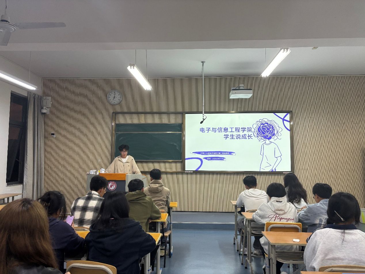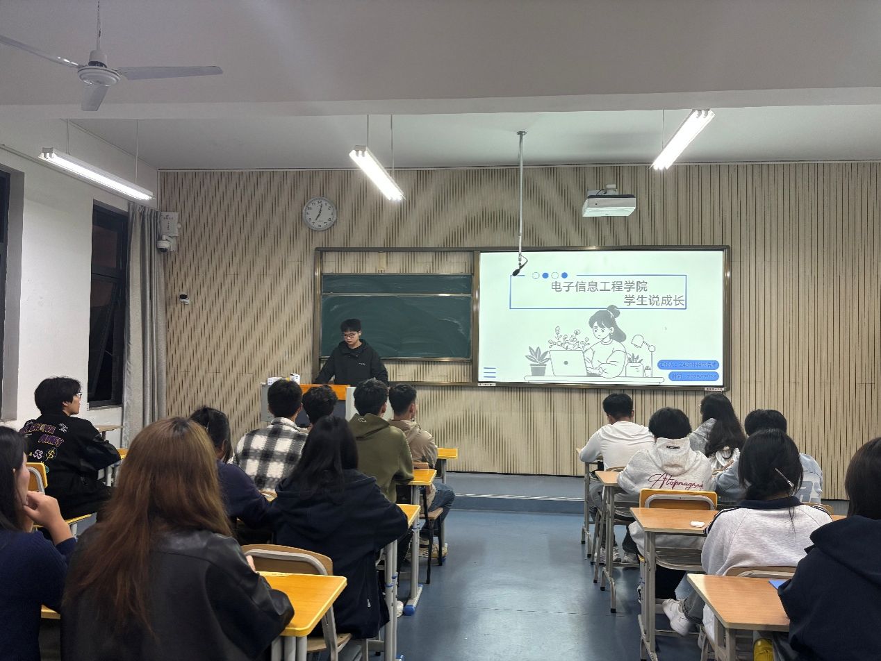 此外,来自2022级的同学则以《竞赛路上的‘破茧’与‘成长’》为主题,复盘了自己备战全国性大学生竞赛的艰辛历程——从连续熬夜调试设备到最终捧回国家级奖项,用“坚持”与“热爱”诠释了电信学子的拼搏精神。
