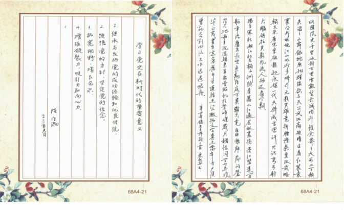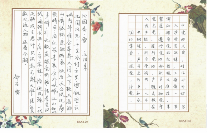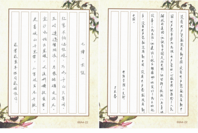 在第二阶段的“学党史硬笔书法展示”活动中,学院体教职工学习党史、手抄党史,积极展示教学基本功。在书写现场,老师们屏息凝神、运笔流畅,把对党的热爱和学习党史的热情融入到一笔一顿中,作品或刚劲有力,或潇洒飘逸,或大方得体,或秀气隽美,展现出BEAT365英国官网教师扎实的教学基本功和昂扬向上的精神状态。