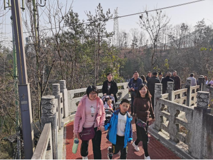 参与活动教师及家属上午八点半在江南校区图书馆门口集合后,徒步登顶香溪洞。春光明媚,天朗气清,徒步过程中,学院领导与同行女教师深切交流、对她们表示关心、慰问。