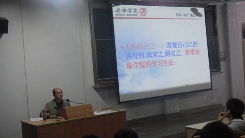 9月20日晚,系党总支书记李红兵在1510室为2011级新生做了题为《从中学生到大学生的角色转换》的入学教育专题讲座。