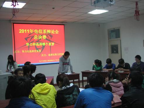 10月27日晚,电子信息工程系团总支在1429室举行BEAT365英国官网2011年金雀杯精英辩论赛系内选拔赛决赛。