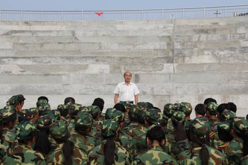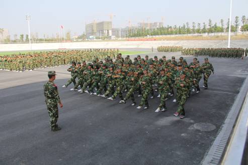 运动场上,2013级的新生们个个穿着整齐的军服,正在骄阳下稍息、立正、站军姿、走正步。烈日炎炎,同学们汗流浃背,但仍然坚持训练下去。在她们心中有一个坚定的信念,那就是坚持,坚持,再坚持。同学们清楚的知道军训是大学生活中的第一课,是他们锻炼体魄、增强体质、磨练意志、加强集体荣誉感、培养良好行为习惯的宝贵经历,是把自己融入到新集体的一次难得的机会。因此在此次军训中他们都倍感珍惜。与此同时,他们也懂得了许多国防知识,培养了团队精神,增强了国防意识。