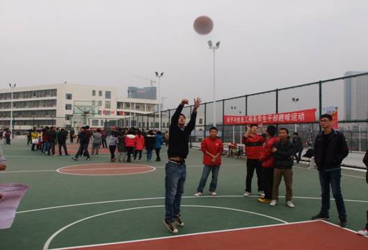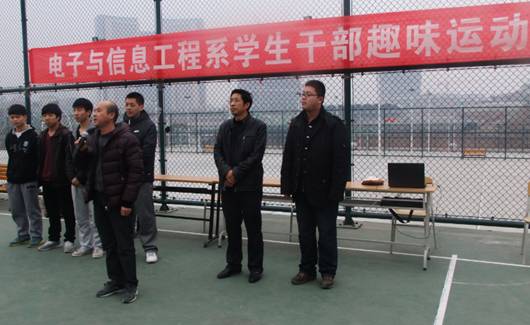 2013年12月8日,电子与信息工程系在江北校区篮球场举行学生干部趣味运动会,出席活动的老师有系党总支书记李红兵、团总支书记石纭昊以及辅导员王贵新。