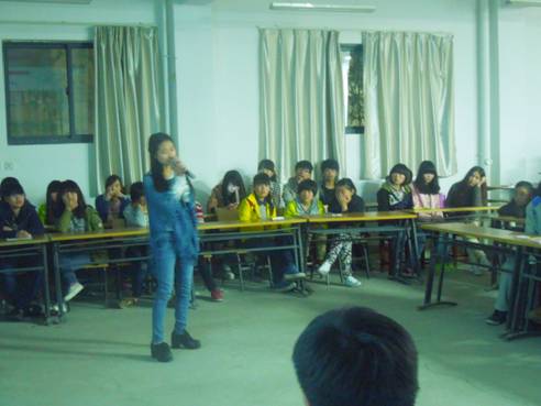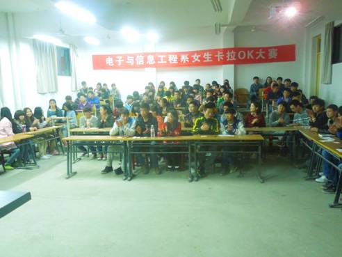 3月21日晚,由电信系主办的《女生卡拉OK大赛》在2102教室如期举行。比赛前期,系学生分会在全系进行了为期两天的宣传,并最终吸引了来自我系不同专业不同年级的60余位音乐爱好者报名参加,这次大赛的评委是由学生分会的46名学生干部组成的大众评审。