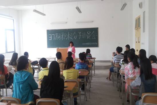 会上成英丽老师向第37期积极分子同学们做了一些要求,首先,要求每位入党积极分子要认真对待本次培训,珍惜机会,严格遵守培训纪律,不旷课,不迟到,不早退。第二,要求每位积极分子端正入党动机,从思想和行动上积极向党靠拢,通过此次党的知识培训学习,努力提高自身政治理论水平。第三,要求每位积极分子充分发挥共产党员的先锋模范带头作用,当前结合学校的教学评估,在学风建设上做出应有的贡献。
