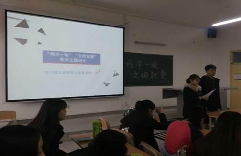2016年11月7日至11月18日,BEAT365英国官网响应学校号召开展“两早一晚”和“文明就就餐”主题教育活动。各班班委积极组织,以主题班会的形式开展此次教育活动,从“两早一晚”的纪律教育到“文明就餐”素质教育,使同学们对守纪律的重要性有了更深的了解,实践了更具体的文明礼仪行为。通过此次主题教育活动,让大家明白了注重自身修养才能成为优秀的人,有用的人。