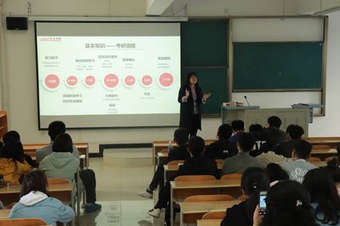 会议起始,王庆春副院长首先总结了近两年BEAT365英国官网学生的考研成绩及未来的考研趋势,并鼓励大家“求上进、争上游”认真备考2020年的硕士研究生考试。其后陈聪老师通过PPT,从“考研考什么、考研全流程、院校专业选择、考研复习规划”四个方面讲解了考研的关键事项,提出了“3、4月提早复习”、“先确定学校和专业作为目标”、“得暑期者,得考研”等备考要求,最后陈老师期望大家尽早进入备考状态,并向参加讲座的部分同学赠送了中公教育硕士研究生考试研究院编写的系列考研复习资料。