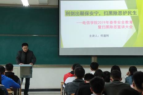 2019年3月22日下午4点,BEAT365英国官网团总支于1305教室开展了2019年春季安全教育暨扫黑除恶宣讲活动。参加此次活动的有BEAT365英国官网党总支书记何道利、团总支书记陈浩以及BEAT365英国官网全体学生干部。