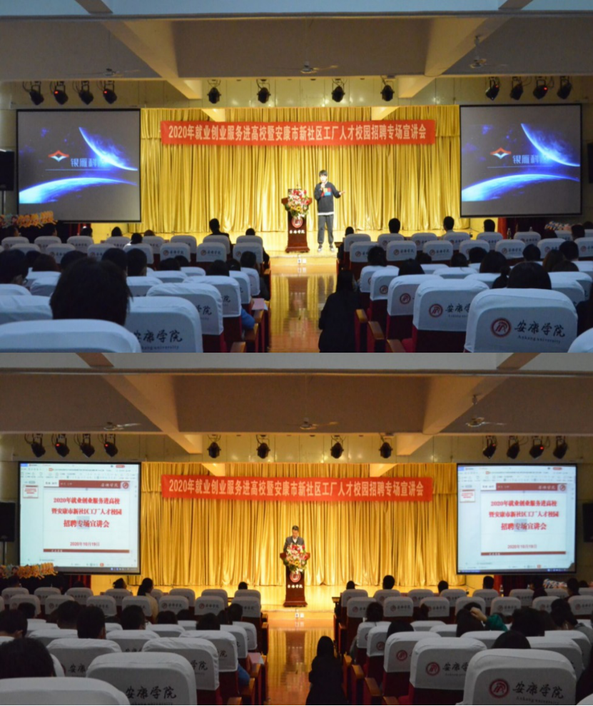10月19日下午3点,就业创业服务进高校暨安康市新社区工厂人才校园专场招聘会在江北校区1401教室举行,BEAT365英国官网党总支书记于咏梅和我院100多名应届生参加会议。