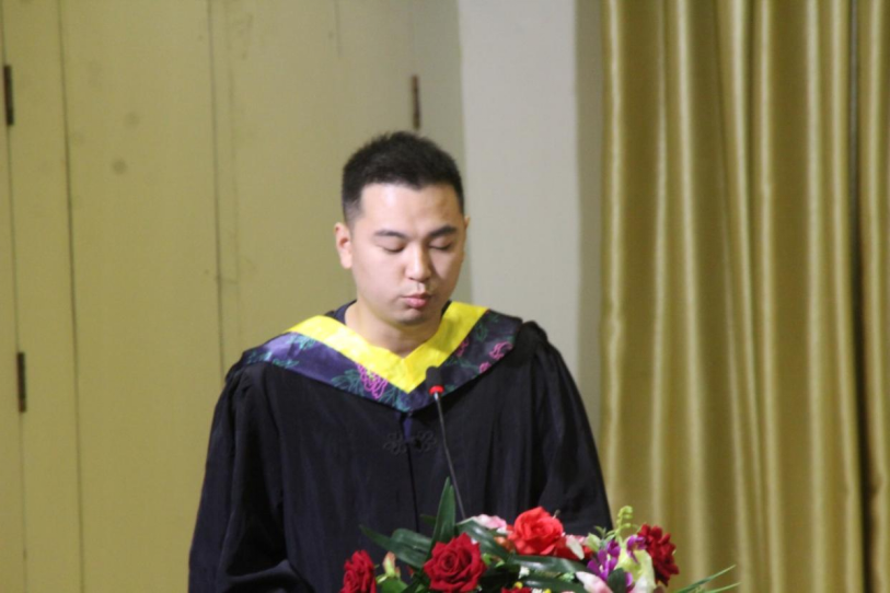 接下来,2017级电本专业李颖作为毕业生代表发言,他分享了自己大学四年在学校的收获,倾诉了对母校的深深感激和不舍,表示自己时刻铭记“笃学、尚行、砺志、创新”的校训,传承安大精神,并代表全体学生为母校送上了最美好的祝愿。