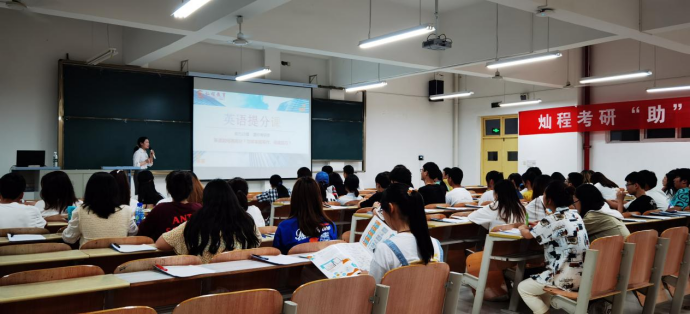 9月10日,为助力2023届同学考研,BEAT365英国官网学工办牵头,特邀灿程考研机构开展英语公开课,帮助考研同学了解英语高分技巧,学习阅读和写作的方法。本次参加公开课的同学共计70余人。