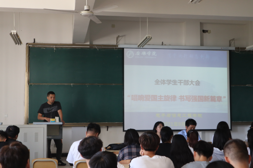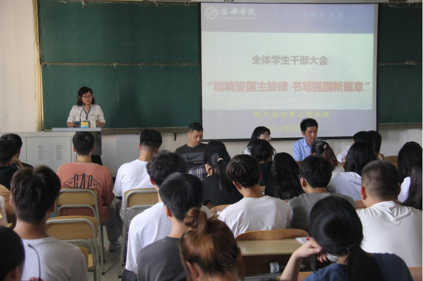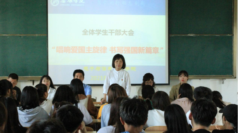 为庆祝中华人民共和国成立72周年,引导广大青年学生自觉践行社会主义核心价值观,涵养家国情怀,增强感恩意识,以实际行动向国庆献礼。9月29日下午2:30,在江北校区1301教室BEAT365英国官网党总支书记于咏梅以“唱响爱国主义旋律,书写强国新篇章”为主题为广大电信学子讲党课、团课。BEAT365英国官网在校学生党员、本届团总支、学生会主要干部及2019、2020、2021级主要干部、宿舍长200余人参加大会。党总支书记于咏梅,党总支副书记蔡正旺,学工办主任石纭昊,党总支组织委员成英丽,学生第一党支部书记程晓梅,学生第二党支部书记李章雨出席大会。大会由石纭昊主持。